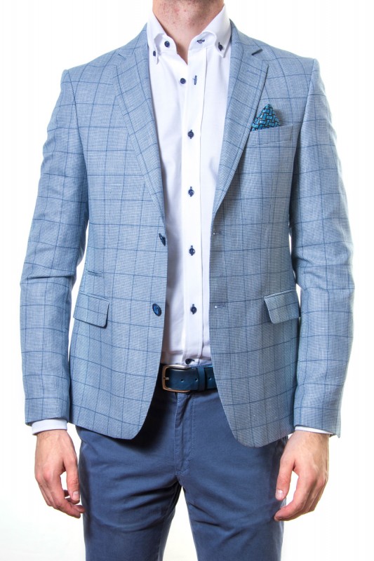 Americana en tono azul de cuadros